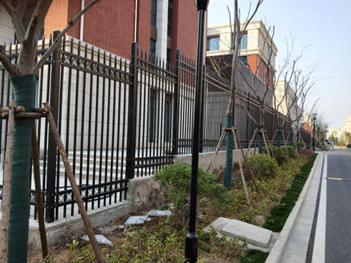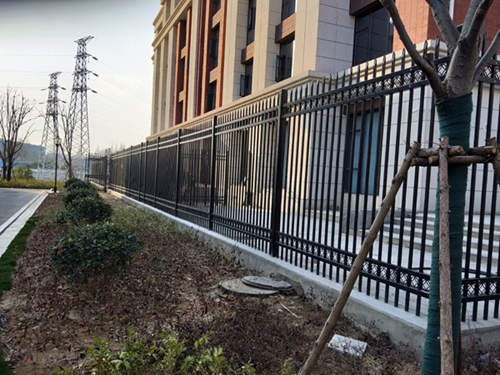 黑色四橫桿加裝飾圓環鋅鋼護欄網價格安裝完成